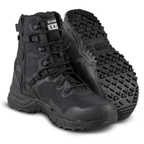 /index.html" data-srcset="../../wp-content/uploads/2024/03/1913-200x200.png 200w, ../../wp-content/uploads/2024/03/1913-400x400.png 400w, ../../wp-content/uploads/2024/03/1913.png 500w" data-sizes="auto" data-orig-sizes="(max-width: 344px) 100vw, (max-width: 300px) 100vw, 400px" />Engineered for those who demand lightweight comfort and the functionality of a hardworking tactical boot, the Alpha Fury 8″ is the epitome of versatility. The slip-resistant rubber outsole provides optimal traction, while the EVA midsole, molded with a nylon shank, ensures superior support for all-day wear. The quick-drying polyester mesh and microfiber PU upper, combined with a no-stitch construction in the forefoot area, create a lightweight and flexible fit. The UFit rapid-lacing system allows for a faster, snug fit, complemented by a gusseted tongue to keep dirt and debris out. Featuring a custom-molded thermoplastic heel counter and toe box, as well as a stationary Achilles Cushion for increased comfort and stability, these boots prioritize both protection and wearer well-being. With an airport-friendly construction and a weight of just 16.96 oz (480.8g), the Alpha Fury 8 Side Zip Boots are the ultimate choice for those who value agility without compromising on performance.
