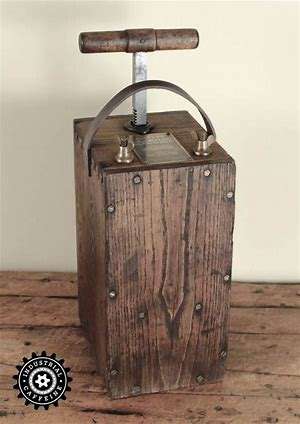 Simple mechanical blasting machine for triggering an explosive charge.