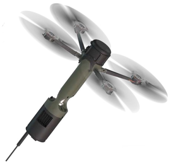 The Drone 40 give a single troop Multiple Round Simultaneous Impact (MRSI) capabilities. Utilizing a standard 40mm grenade launcher , multiple munitions can be launched with each munition acting as a force multiplier. It features a GPS based autopilot system with a portable ground control station communicating over an encrypted radio data-link. It leverages commercially available drone components combined with mass manufacturing techniques from the printed circuit board industry to produce a highly capable unmanned aerial system.