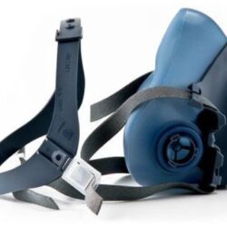 Full-face mask with the ability to fit the filter canister on the left or right side of the face piece.