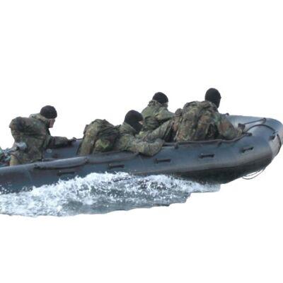 /index.html" data-srcset="../../wp-content/uploads/2022/02/0856-PPP-200x200.jpg 200w, ../../wp-content/uploads/2022/02/0856-PPP-400x400.jpg 400w, ../../wp-content/uploads/2022/02/0856-PPP.jpg 500w" data-sizes="auto" data-orig-sizes="(max-width: 344px) 100vw, (max-width: 300px) 100vw, 400px" />The INFLATABLE BOAT provides water surface mobility for clandestine insertion operations and other missions. Light and compressible into a compact unit for storage, it provides a flexible and mobile transport for small units. FEATURES: Hull design creates hydrodynamic lift and compartmentalizes the running surface to reduce vacuum Higher running surface to reduce vacuum, provides higher speeds with heavier loads and faster-to plane cruising speeds with heavier loads Large Interior space Polyurethane fabric makes a stronger, more durable tube with better air-holding characteristics than Hypalon or PVC alternatives, Superior performance in all conditions. Thermal welded seam failure is virtually non-existent. Extended service life D-rings for towing bridle Deck drain, high capacity External/Internal lifelines Handles, 6 ea. side, one bow Keel, inflatable with valve Lifting rings (4) Rub strakes on sides and keel Composite transom, floorboards, and thrustboard ? lighter and stronger than aluminum and impervious to detrioriation from water intrusion (won?t rot like wood) Transom tow eyes SPECIFICATIONS: P 4.7 (but vary per model and version) Overall Length: 15’5″ft/ 4.7m . Outside Beam: 6’5″ft./1.98m Internal Length: 12’3″ft./ 3.73m Internal Beam: 3’ft/ 0.91m Tube Diameter: 20″in./50.8cm Number of Chambers: 5 Usable Deck Space: .38.32ft²/3.56m² Min Floor Length: 12’2″ft./3.73m Craft Weight Empty: 180lbs./81.1kg Weight w/ High Pressure Air Deck: N/A Weight w/ Composite Hard Deck: 279lbs./126.8kg Weight w/ Composite Roll Up Deck: 274lbs./124.5kg Folded Dimensions: 27″ x 29″ x 56″/68.6 x 74 x 142cm Transom Height: 20″in./50.8cm Max Payload: 2,768lbs./1,251kg Person Capacity: 10 Max HP Rating: 65/65 (Hard Deck/Roll Deck): Max Engine Weight: 320lbs./145.5kg Standard Color: Black