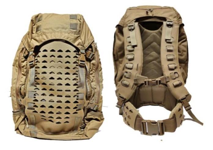The Pursuit is a medium sustainment pack fit for short missions with MOLLE webbing, an internal frame, a full length zip, and drawstring top closure.